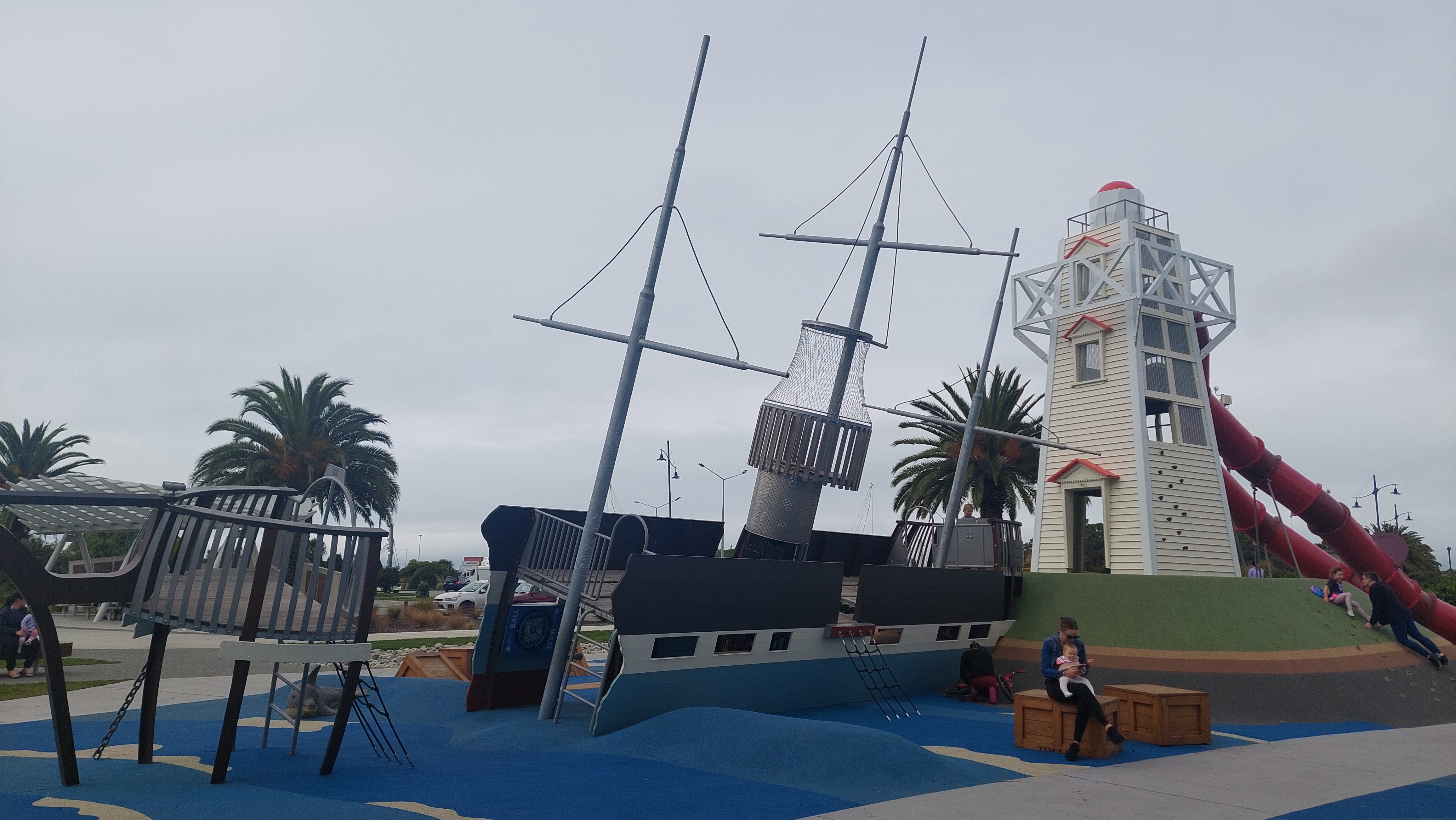 놀이터 옆에는 잔디밭이 넓게 펼쳐져 있어서 피크닉 매트 하나 깔고 간단하게 점심이나 간식 먹기에도 좋아요. 아님 피크닉 할 테이블도 많고 화장실도 여기저기 많아서 편리해요. 저희는 간단히 샌드위치랑 과일 챙겨가서 잔디 위에 앉아 바닷바람 맞으며 여유롭게 쉬었답니다.